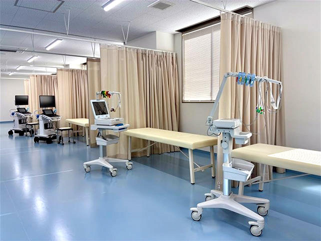 心電図や脳波計、呼吸機能検査機器など、生体情報を調べるための多様な機器を設置しています。特に医療現場で需要の高いエコー検査装置も充実しており、解剖学の知識と連動した実践的な操作技術を習得します。