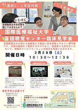 2月28日(土)に大田原キャンパス 言語聴覚学科では高校生を対象に、言語聴覚センター臨床見学会を開催します!