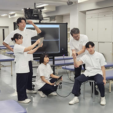 来年度の入学者向け理学療法学科パンフレットの撮影を実施しました。最新のICT(情報通信技術)機器を活用した教育環境と、教員と学生の距離の近さを象徴する「信頼関係」をテーマに、活気あふれる教育現場の今を切り取りました。