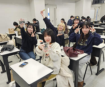 祈祷の後は大学に戻り、みんなで恵方巻を楽しみました。 今年の恵方を向きながら、言葉を交わさずとも伝わる「全員で合格する」という強い決意。 厳しい受験勉強の中、久しぶりにクラス全員の笑顔が見られた、最高のリフレッシュタイムとなりました。